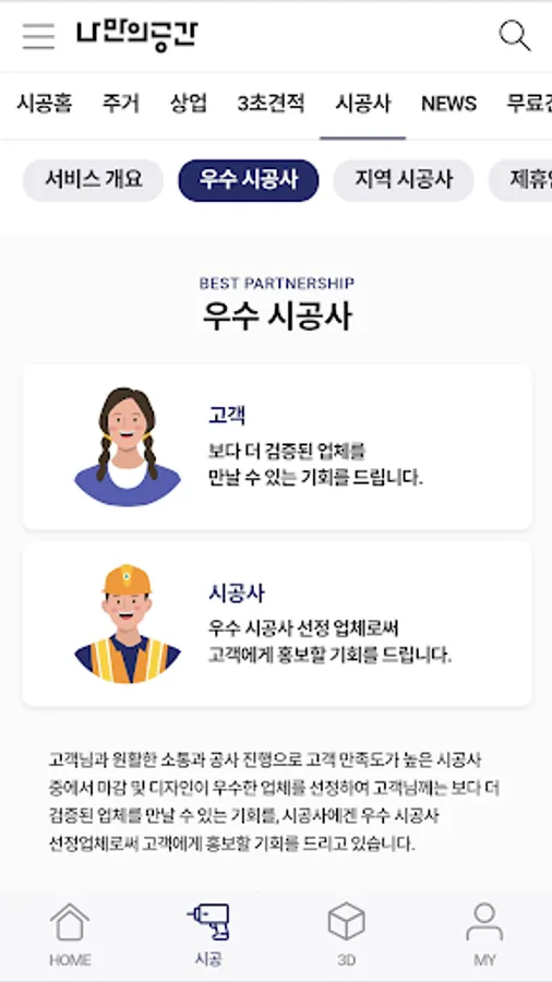 - You can meet various companies optimized for housing in advance through portfolios by construction company that fit the apartment/villa space classification, square footage, and desired style.