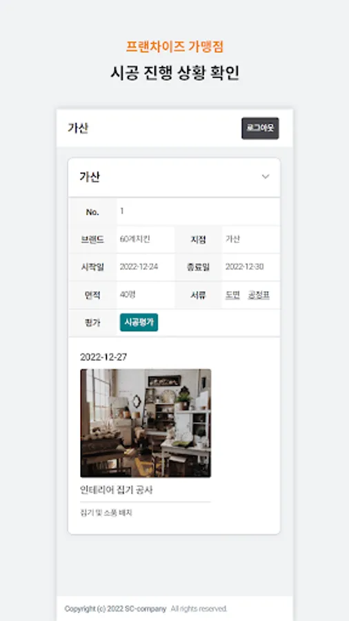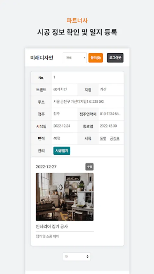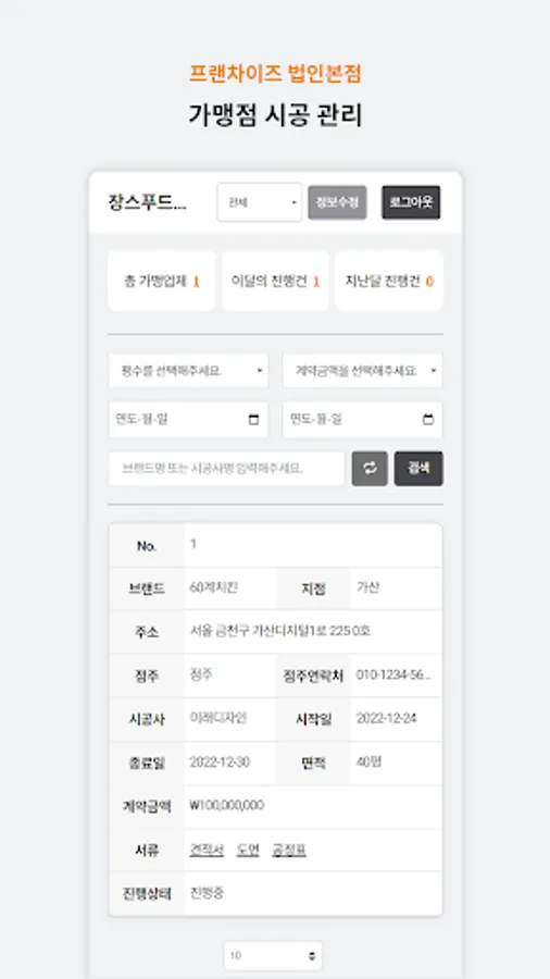 - Search through various and simple filters to efficiently manage the interior construction of affiliated stores.