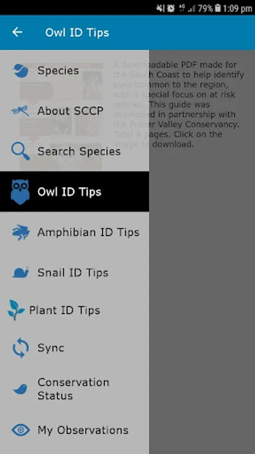 The app is designed for Android mobile devices that run OS 4 or higher as well as IOS. New species profiles and the information is being added regularly. The SCCP is also looking to build capacity to incorporate a “report a species” function so that users can submit images, coordinates, and records of species for confirmation. Ultimately the SCCP hopes the system will be integrated with its “Species at Risk Networking” platform as well as provide a conduit for submitting occurrence information to the BC Conservation Data Centre as well as other programs like iNaturalist and Naturewatch