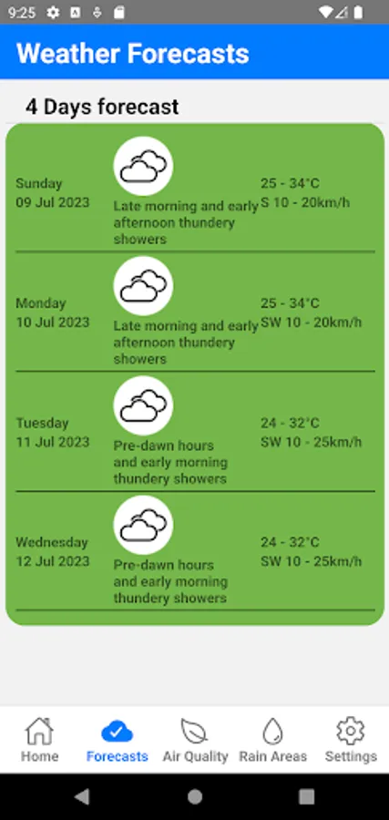 SG Weather App. Singapore weather forecasts, live weather, rainfall, PSI and UV index. Data from Singapore NEA.
