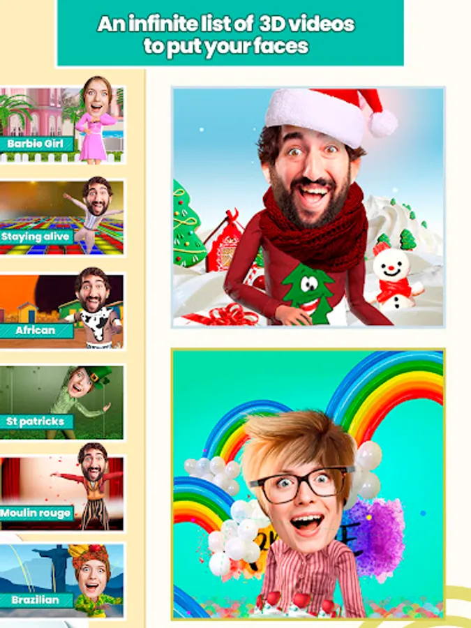 Become a star in a personalized birthday video featuring your face on dancing. Find a funny dance move that suits your Birthday celebration. Place a 3D model of your face onto the dancers, check out the list of the happy dances in the app, create your custom birthday video and bring joy to your birthday celebrations with your family or friends!