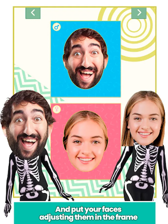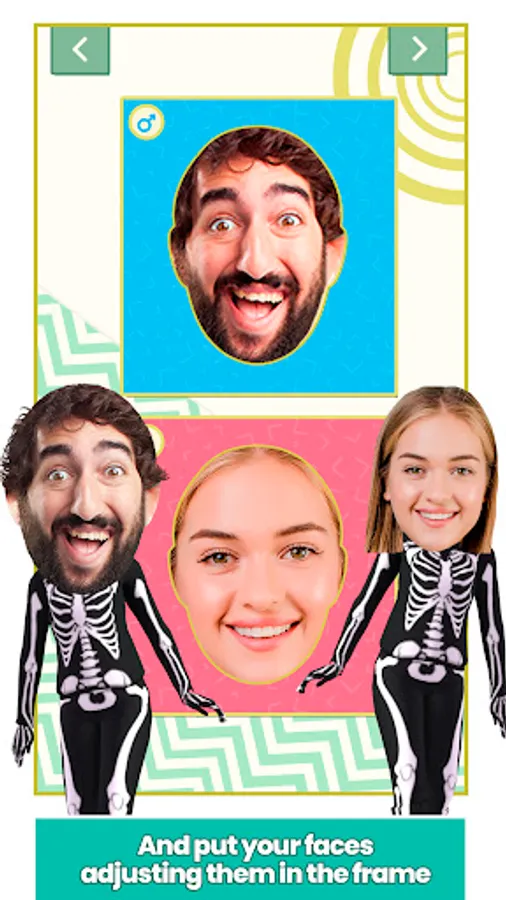 Download now and try the most hilarious gif animations with your face in! Select a funny scenario that suits you and use our face montage tool to put your face in another body easily. Place your face in the gif animations and instantly create short video clips to share. This face changer allows you to easily change your face in a fun video clip and share it with all your friends on social networks like Instagram or WhatsApp to make it fun.