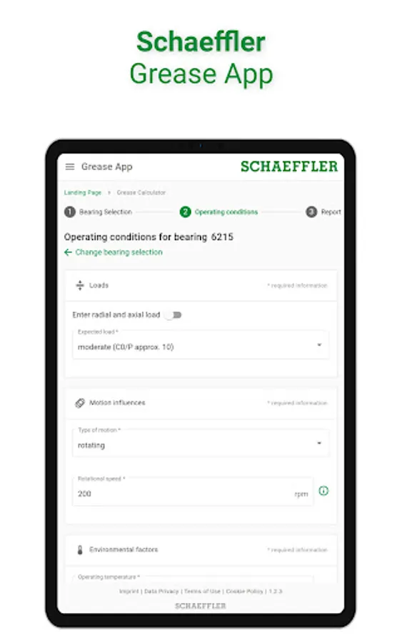 With just a few clicks and entries in the intuitive Schaeffler Grease App you can quickly determine the most suitable type of Arcanol grease, the grease service life, the relubrication interval and the lubricant quantity for initial lubrication and relubrication of your bearings. This way you can avoid over- or undergreasing, incorrect intervals and unsuitable lubricant selection. You also make an important contribution to more sustainable lubrication.