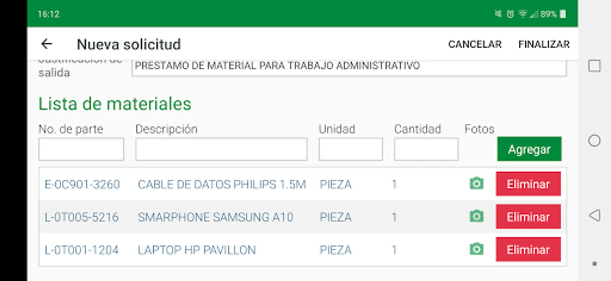 Capture evidence of the requested material.