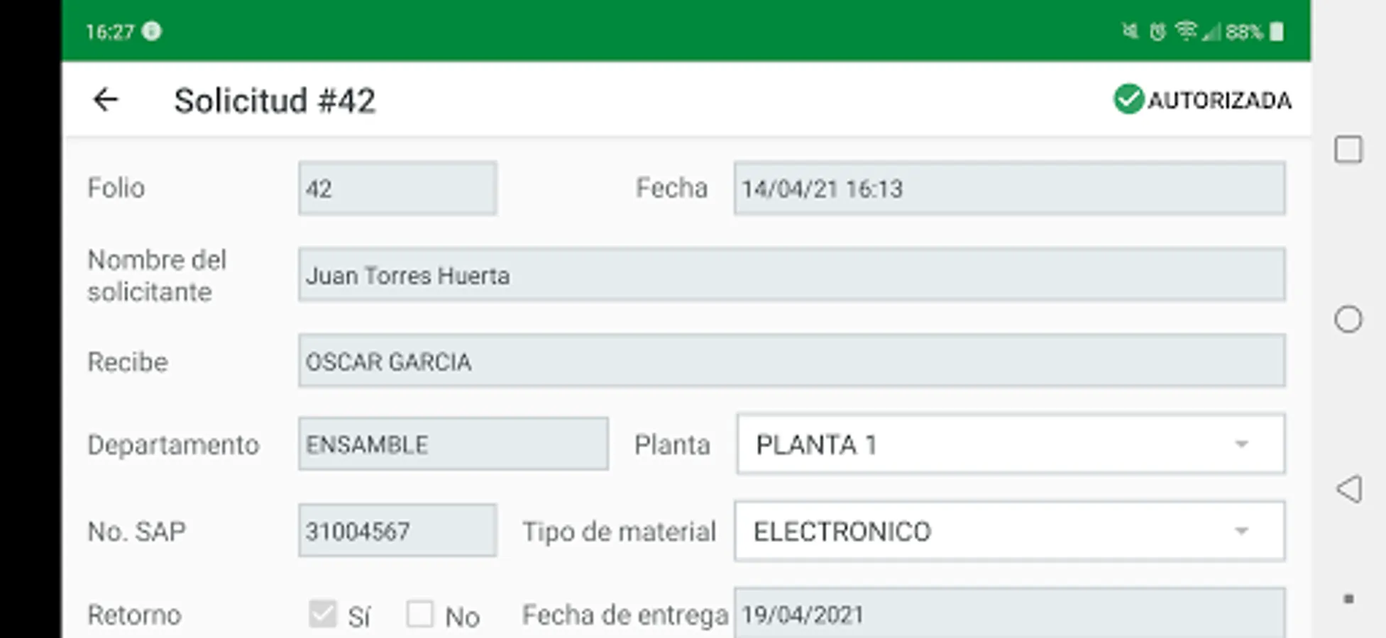 Requests the output of material from a plant.