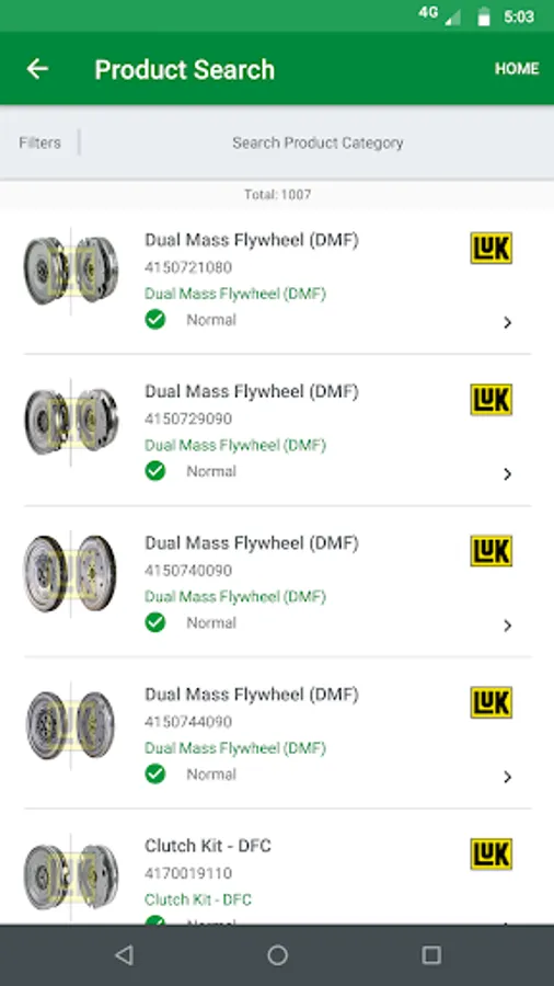 Schaeffler Parts4u application is a tool to search for any part number based on vehicles categories, makes etc. It also allows the user to browse through the catalogue and filter out parts.