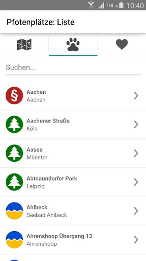 The paws places app is the result of the consistent further development of our popular app dog beaches. More than 1,000 reported Hundeausläufe in Germany can be found in this app! In addition to more than 170 designated dog beaches on the North and Baltic Sea, the dog beaches in addition shows plus / paws courts App hundreds of designated dog swimming areas, forests and Dogs Dogs freewheels throughout the Federal Republic. Due to the different pins (dog beach, dog washing station & Dog wood or free running) can already hit by zooming in the map more accurate selection.