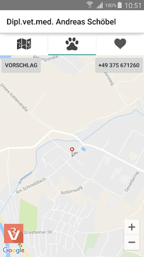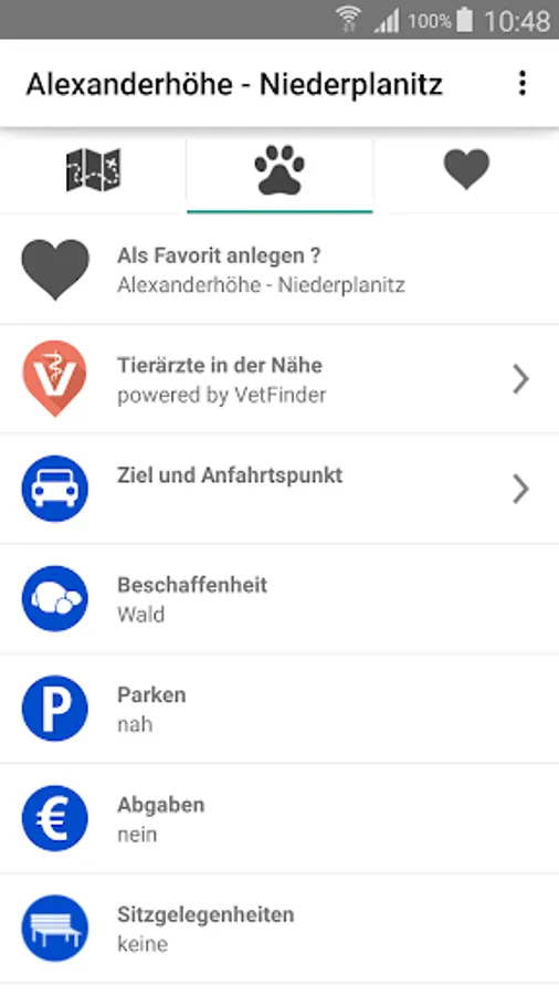 Particularly noteworthy is the vet search included, which is fed by the current data from VETFINDER. Should a disaster occur, can be found here quickly and easily the nearest veterinarian, incl. Route function and numbers.