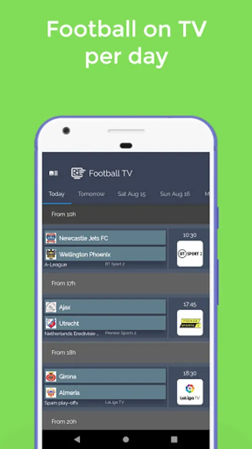 At a glance, visualize all the football matches to come thanks to a simple and clear presentation of the TV football program over ten days.