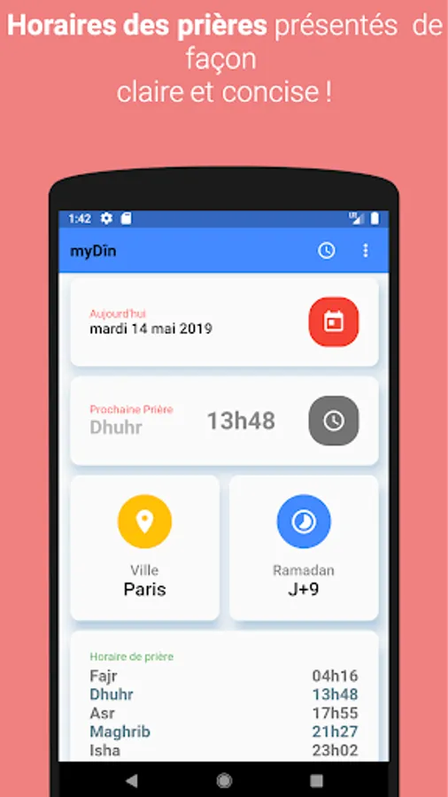 MyDin is a simple application, clear and easy to use to be the best companion for Muslim during all the year as well as during the holy month of Ramadan. No frills, MyDin goes straight to the point and gives most of the information.