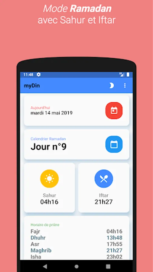 • a Ramadan mode allows to display the hours for the Sahur and Iftar