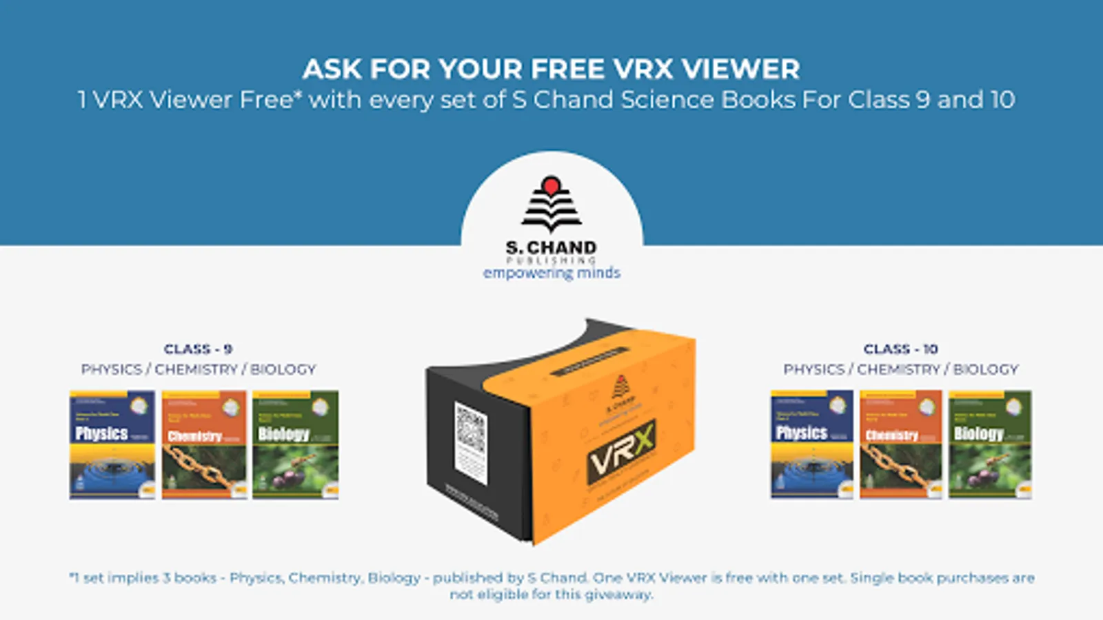 2. VRX Headset/Viewer is FREE with each set of Class 9 and Class 10 Physics+Chemistry+Biology books by Lakhmir Singh and Manjit Kaur published by S Chand group. Ask your bookseller for FREE VRX Headset with your purchase.