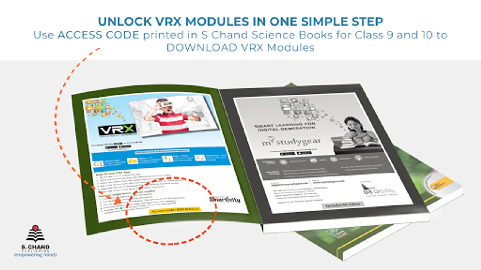 Once you have purchased the books and received the VRX headset, download the app to explore the potential of VR learning. Use the code given in the book to unlock the modules.