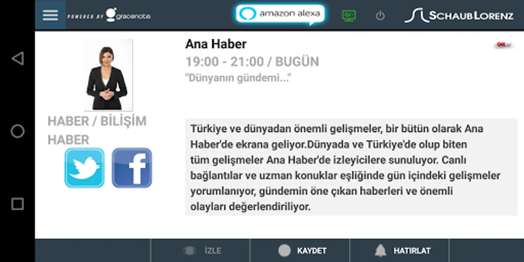 • View broadcasts on TV, prime time info, popular applications and recommended contents for you.