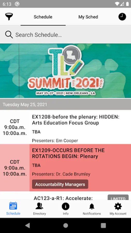 Browse the entire schedule for 2021 Teacher Leader Summit. You can filter by color-coded types, venues or search for what you need. Get the full details of every event without having to crack open an event guide.