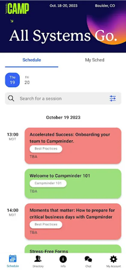 This app was created by Sched, a platform for session registration and attendance management. Manage all the details for your complex multitrack event in one place. We have a vision of a world where events are experienced not endured.