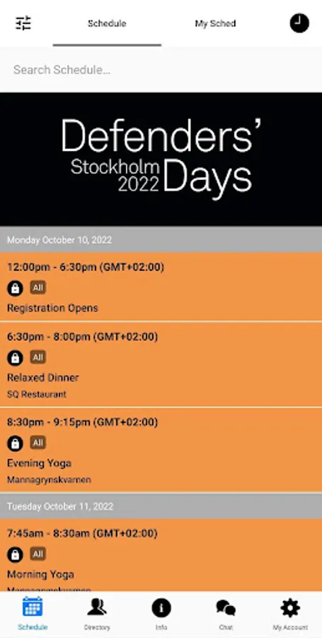 Conveniently browse the entire schedule for Defenders' Days. Get the key information of your event without ever having to crack open an event guide.