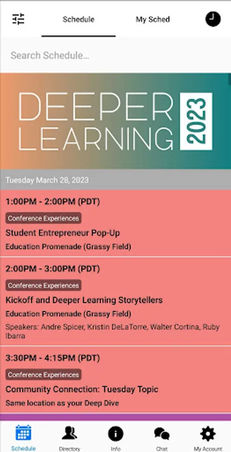 Conveniently browse the entire schedule for Deeper Learning 2023. Get the key information of your event without ever having to crack open an event guide.