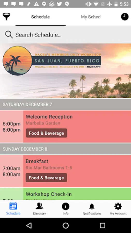 Browse the entire schedule for NACBA's Members - Only Workshop. You can filter by color-coded types, venues or search for what you need. Get the full details of every event without having to crack open an event guide.