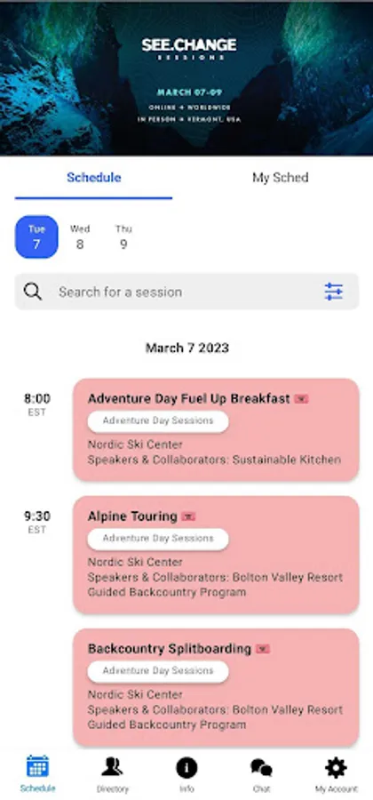 Conveniently browse the entire schedule for See Change: March 2023. Get the key information of your event without ever having to crack open an event guide.