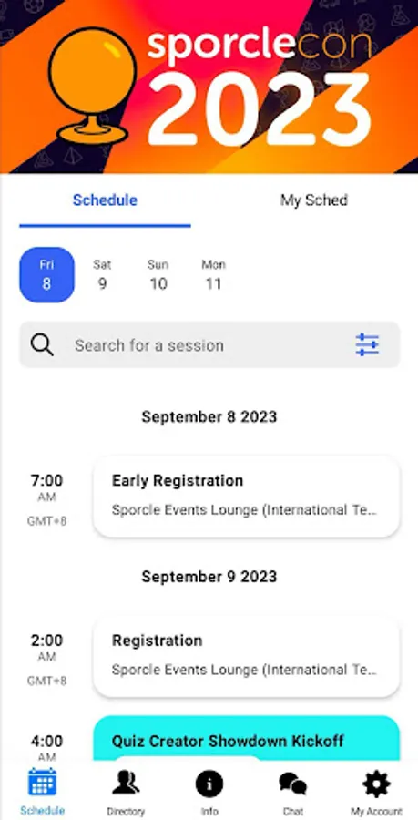 Conveniently browse the entire schedule for SporcleCon 2023. Get the key information of your event without ever having to crack open an event guide.