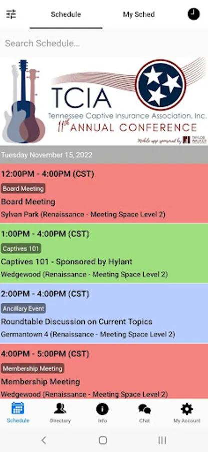 Conveniently browse the entire schedule for Tennessee Captive Insurance Association Annual Conference. Get the key information of your event without ever having to crack open an event guide.