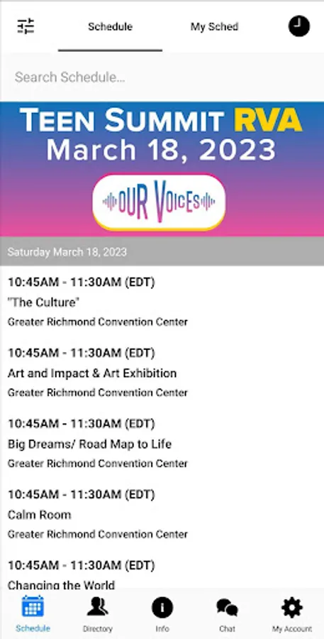 Conveniently browse the entire schedule for Teen Summit RVA. Get the key information of your event without ever having to crack open an event guide.