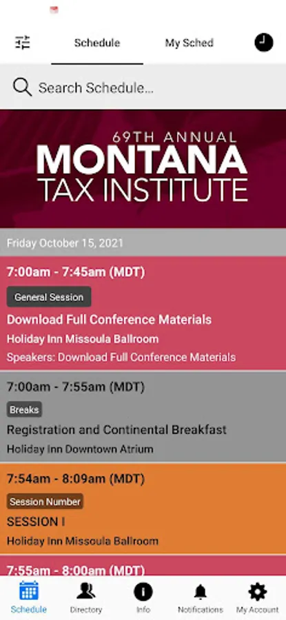 Conveniently browse the entire schedule for 69th Annual Montana Tax Institute. Get the key information of your event without ever having to crack open an event guide.