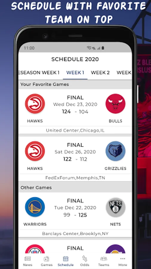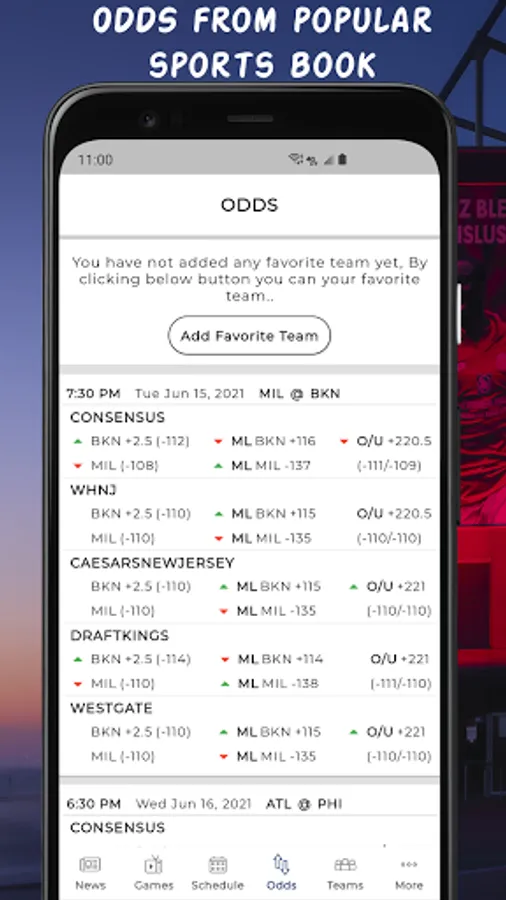 → Odds for upcoming games from popular sportsbook added automatically.