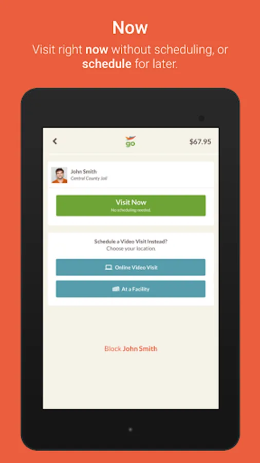 • NO SCHEDULING NEEDED: See your loved one, quicker than ever and video visit when it’s convenient for you without scheduling. The Visit Now feature lets your visit begin in minutes. If the inmate’s not available, you’ll be notified and can schedule a visit later.