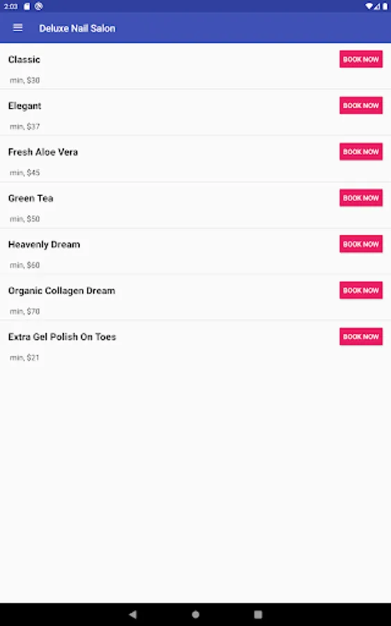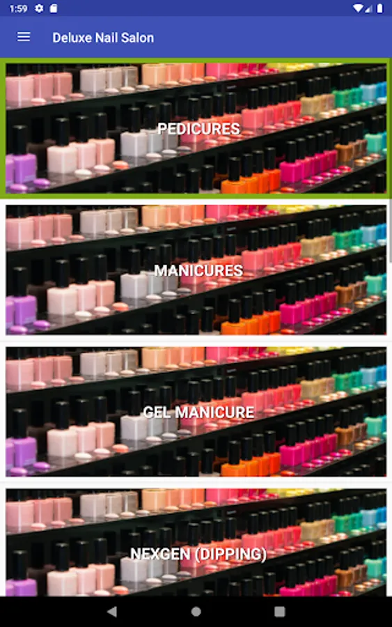 4. Services Menu: Browse the services we offer with times and prices.