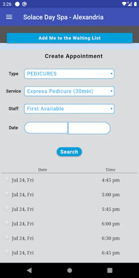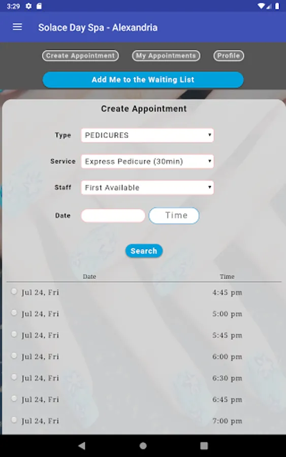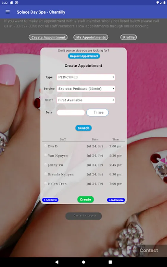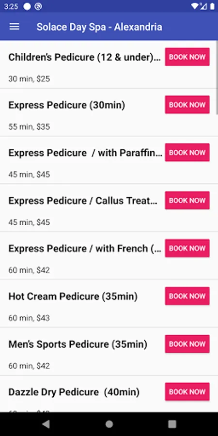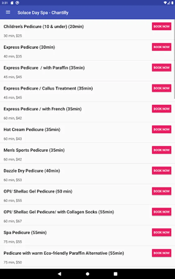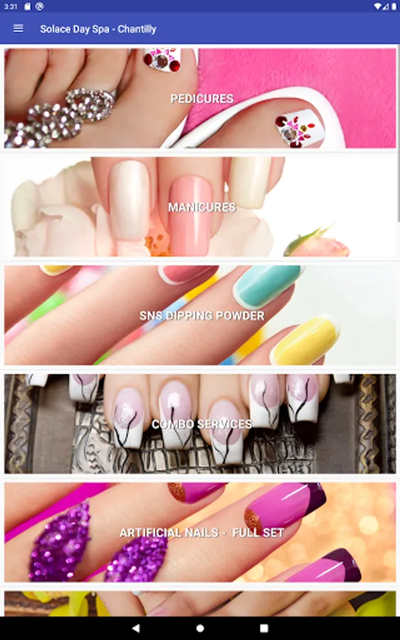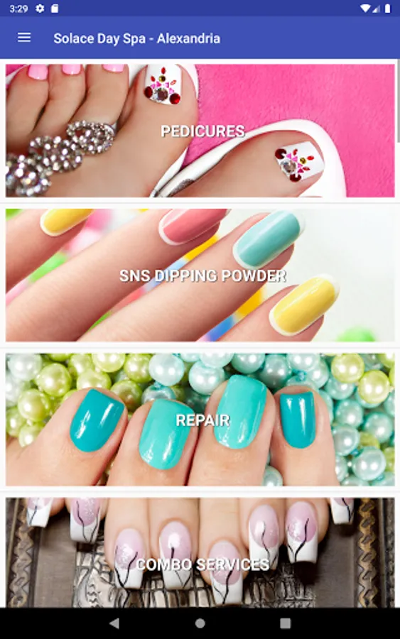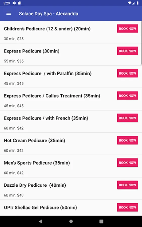 From the Solace Day Spa mobile app, you can book your appointments at any of our locations, view our services and staff by location as well as view the salon location and contact information for all our locations.