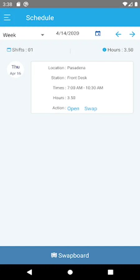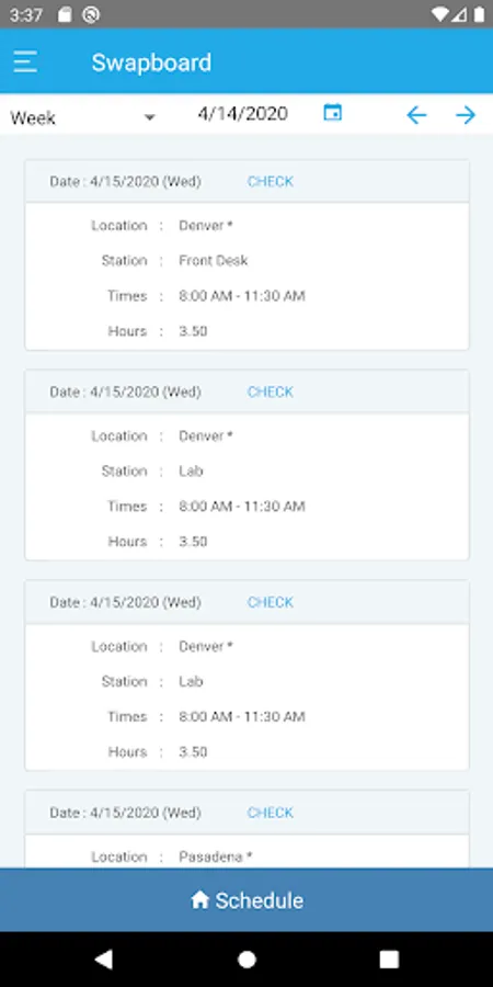 This app is for customers of ScheduleSource TeamWork. Your organization must have a current account and release 2020.2 or greater, to enable access. The app provides users (employees) of the “Employee Portal” with the following functions (subject to the organization’s configuration):