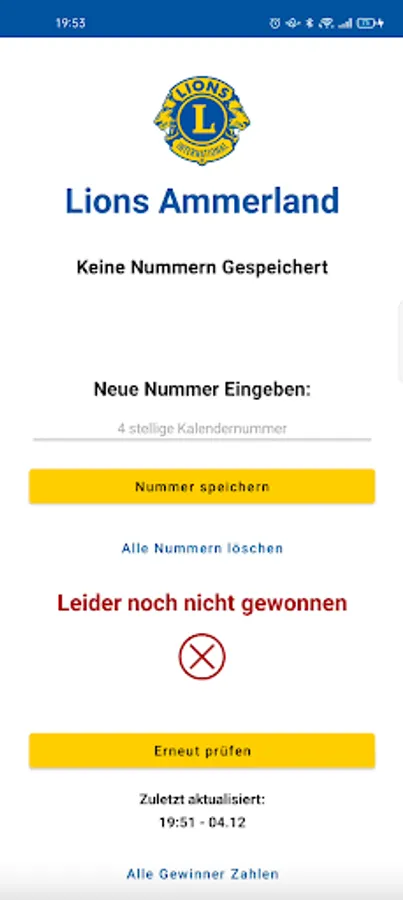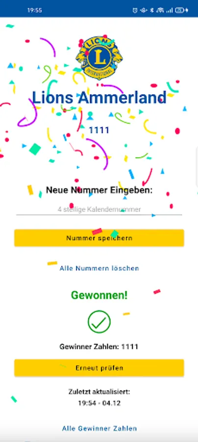 Save up to 4 calendar numbers and quickly check whether you have won.