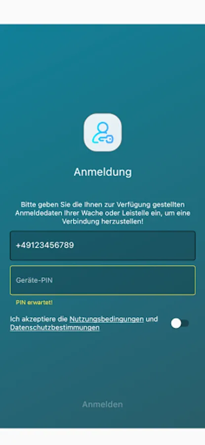 Additional alarm app of the control center network service of VIVASECUR GmbH for mobile alarming of emergency services.