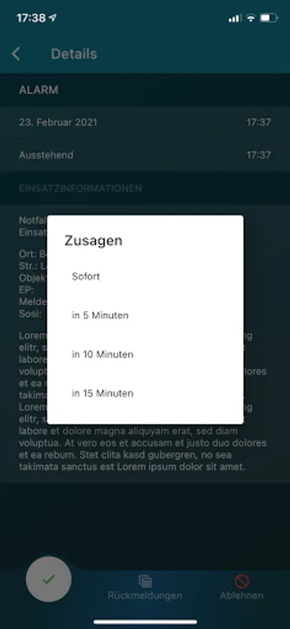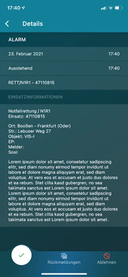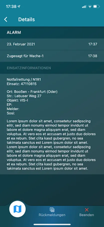Registered emergency services also receive alarm messages directly on their smartphone and at the same time can send feedback on their readiness to the guard. In addition, deployment information and routing to the deployment site are displayed. The connection to the guard takes place per emergency worker and smartphone.