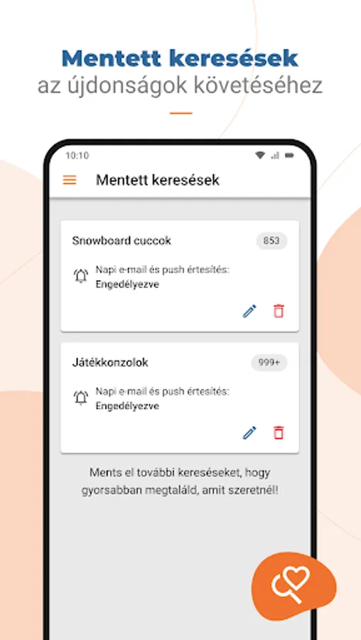 -Kedvenc hirdetések és keresések mentése