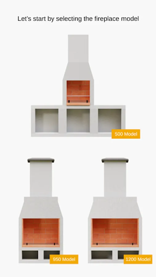 Please note that the basic render with the fireplace is white when cured. All painting and stencil work is to be done by the owner. The designs in the app are there to give you an idea of what is possible.