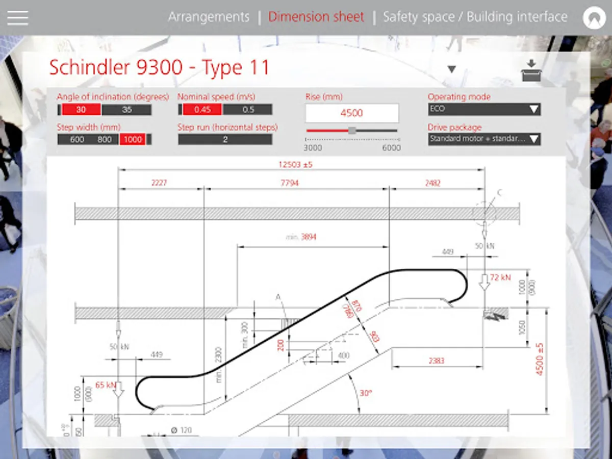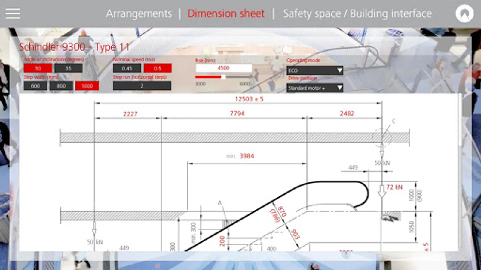 - Planning data: commercial escalator dimension sheet, arrangements and safety space
