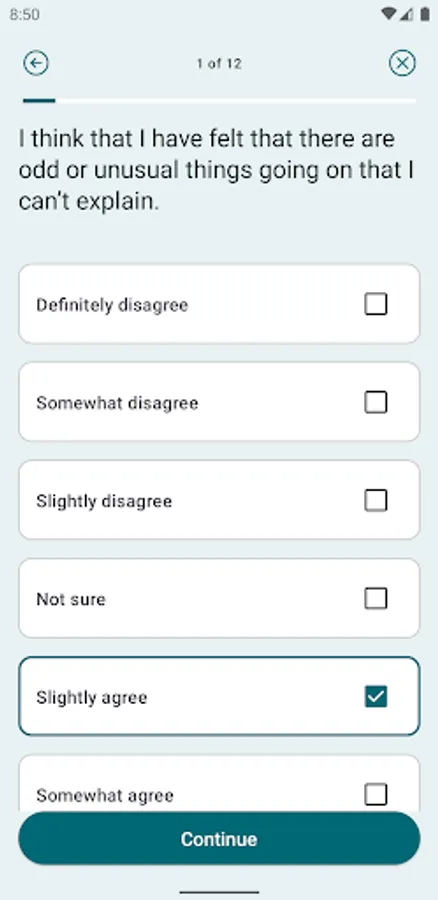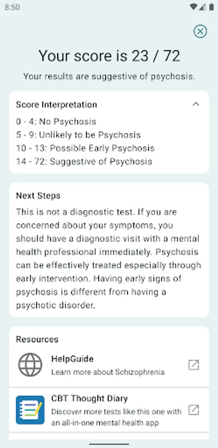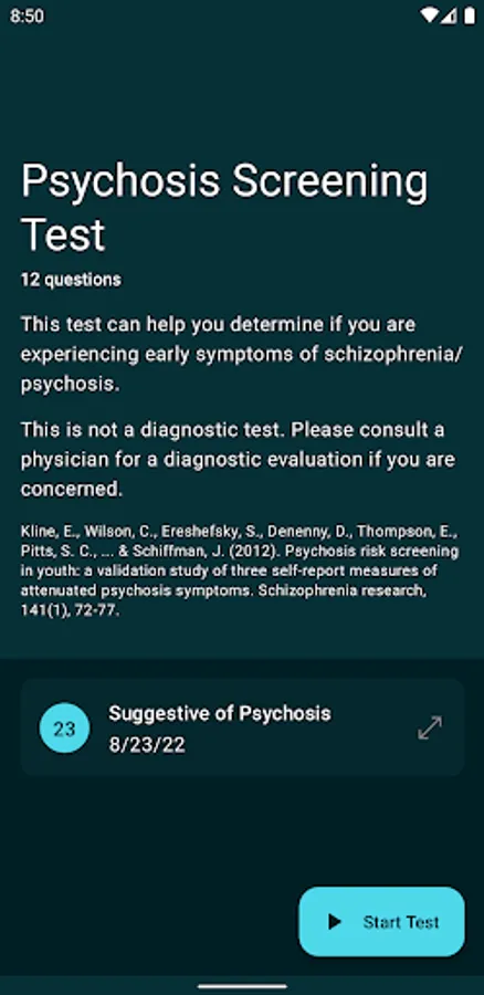 Disclaimer: This is NOT a diagnostic test. A diagnosis of psychosis or schizophrenia can only be provided by a qualified healthcare professional.