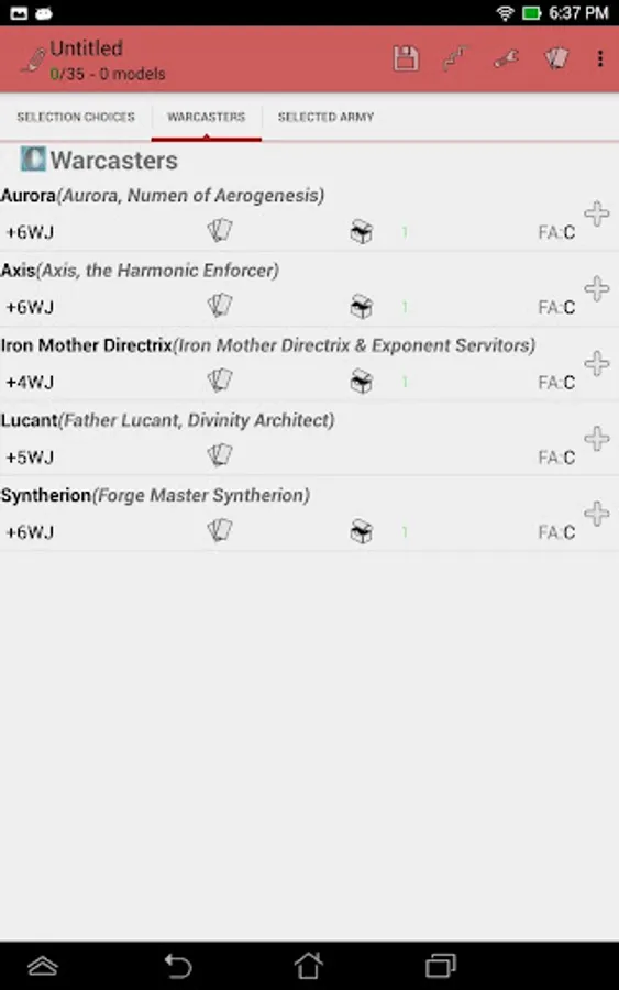 The list building allows you to create armies for all Warmachine & Hordes factions, including Mercenaries, Minions, Themed forces ("Tier") and Contracts. All modifications to FA, cost, list restrictions supported by theme forces and contracts are fully functional.