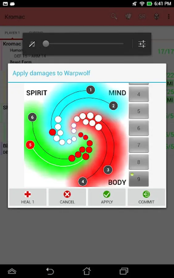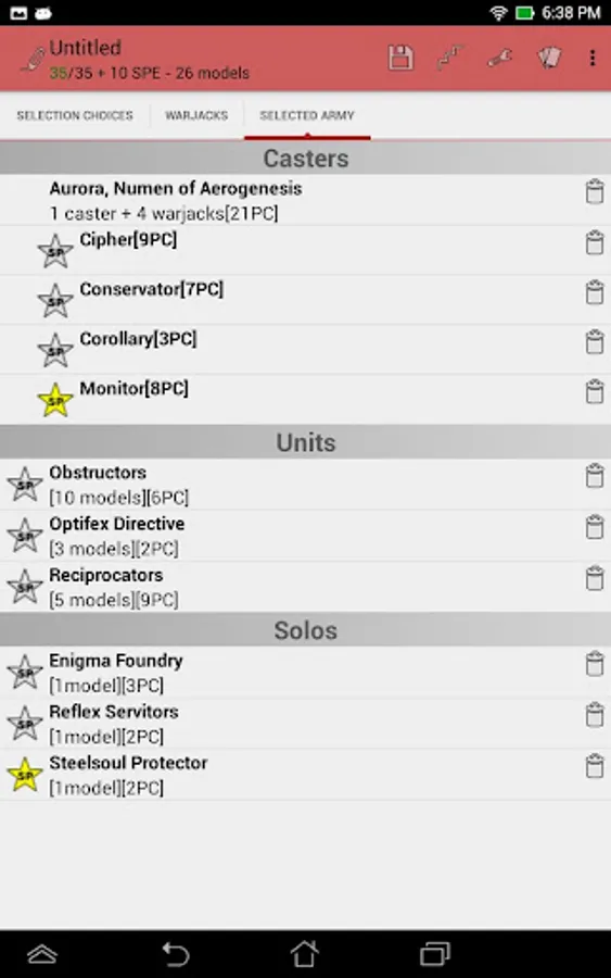 The "Battle" allows you to directly monitor your game, using previously constructed army lists. It allows damage tracking (for warjacks, colossals, beasts, multi-HP units, ...).