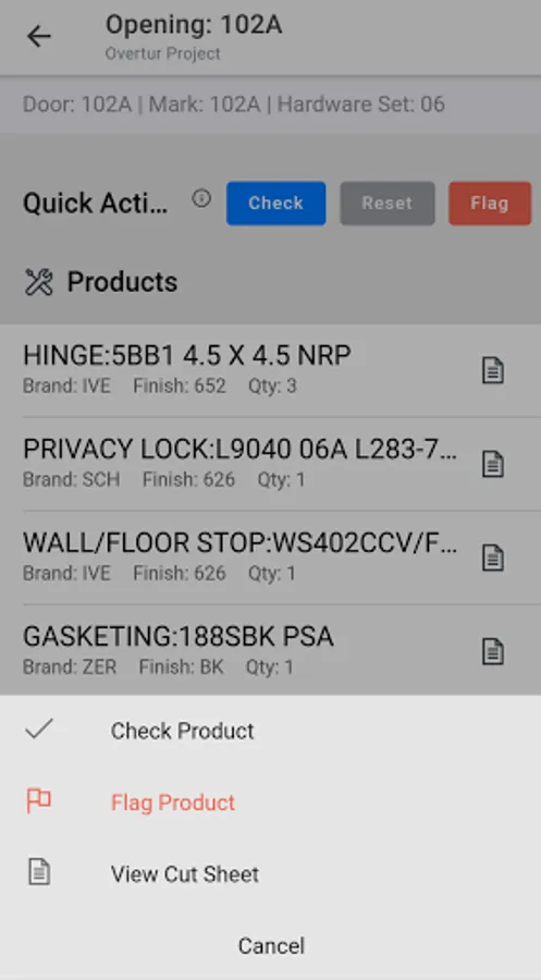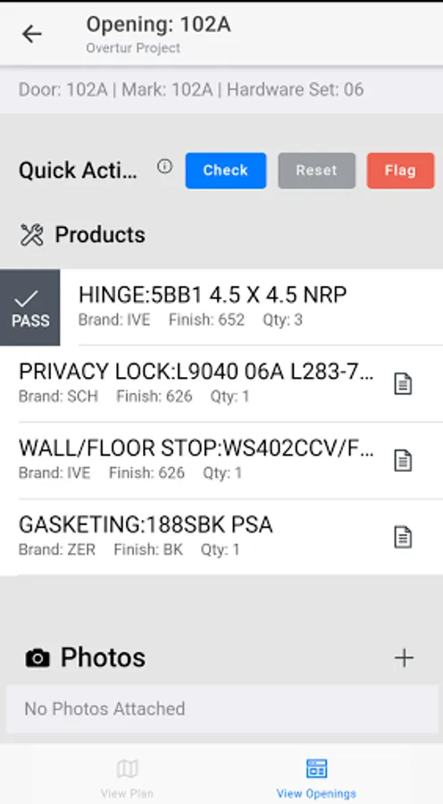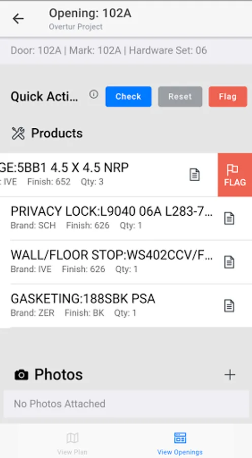 The Punch List tool enables users to walk down a completed installation with a set of plans and the hardware sets and products for the project. Users can accept or flag the door hardware on a door, or the opening itself, then further add notes, take photos, attach pre-snapped photos, or add voice memos.