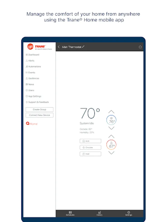 - Control, monitor and schedule your home's heating and cooling system from anywhere