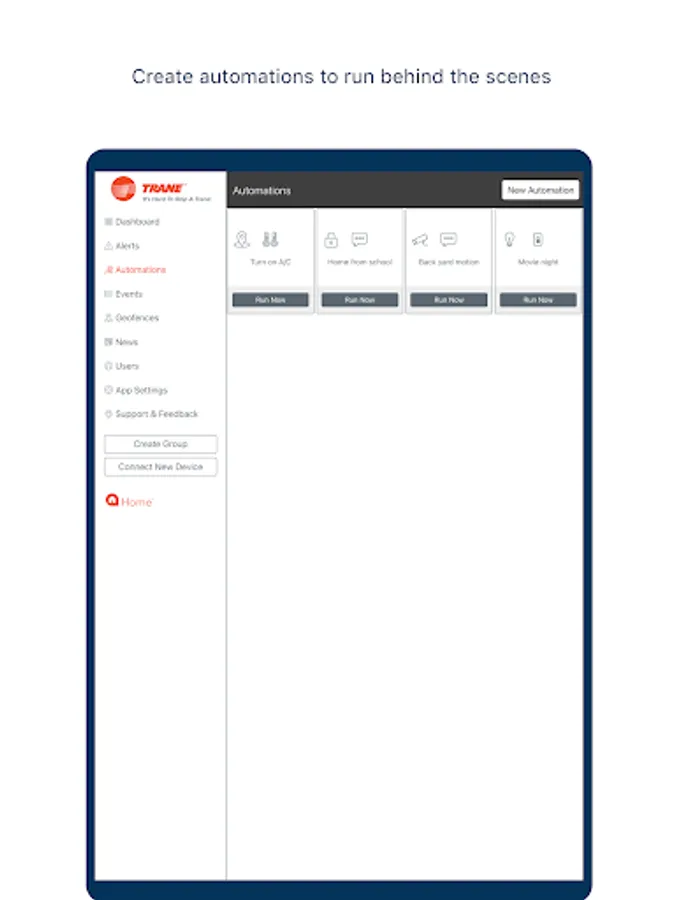Take care of your home and the people in it from anywhere with Trane® Home (formerly Nexia™). Trane Home is home automation made simple because now you stay connected everywhere you go. Run the most important systems in your home - thermostats, locks, lights and cameras - from your Android phone. Supported by household brands like Schlage, Trane Home ties together the things that matter most. Don't have a Trane Home account yet? Visit https://www.tranehome.com to learn more!