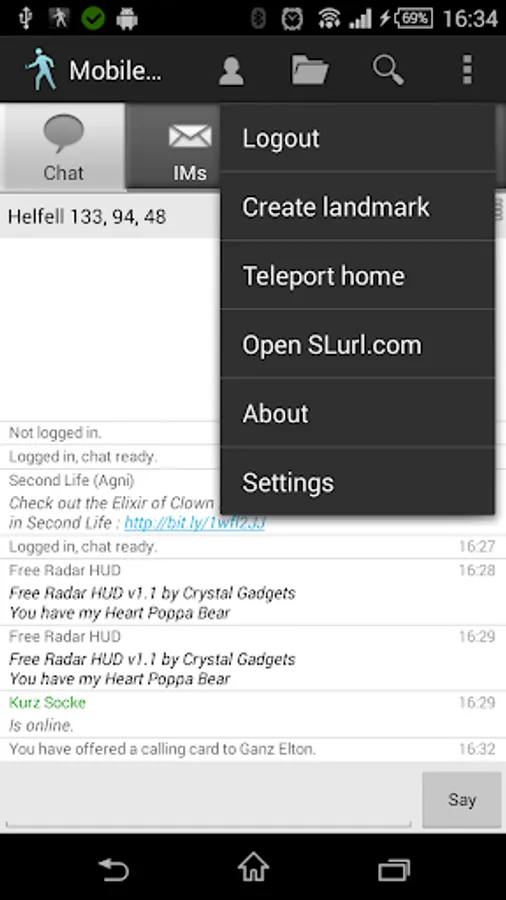 Mobile Grid Client is a Second Life (SL) and Open Simulator (OpenSim) messaging client/viewer with local chat, IM, group chat, people search, mini map, the ability to teleport, inventory support and much more.