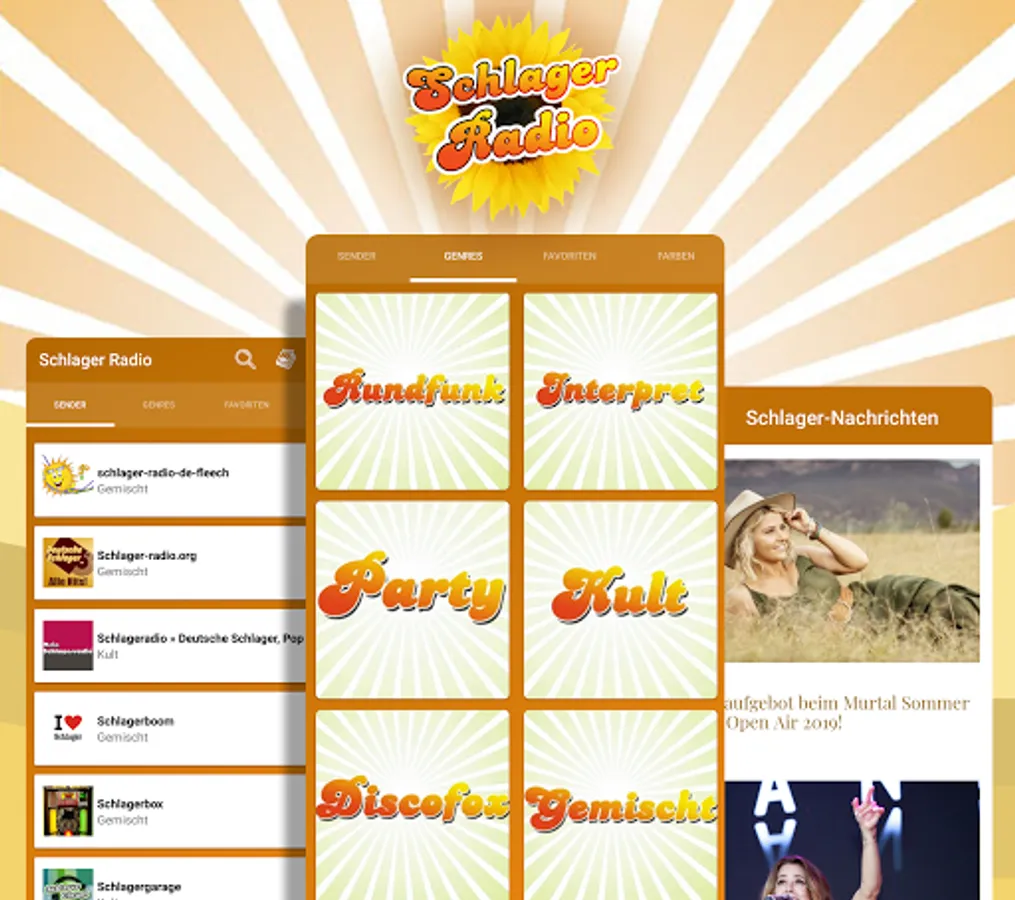 You love hits? Then download the "Schlager Radio" app on your mobile.