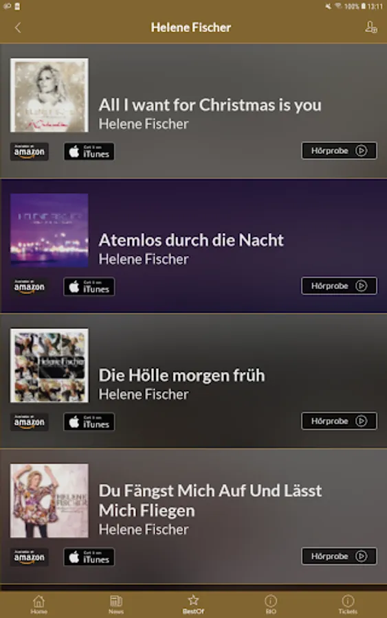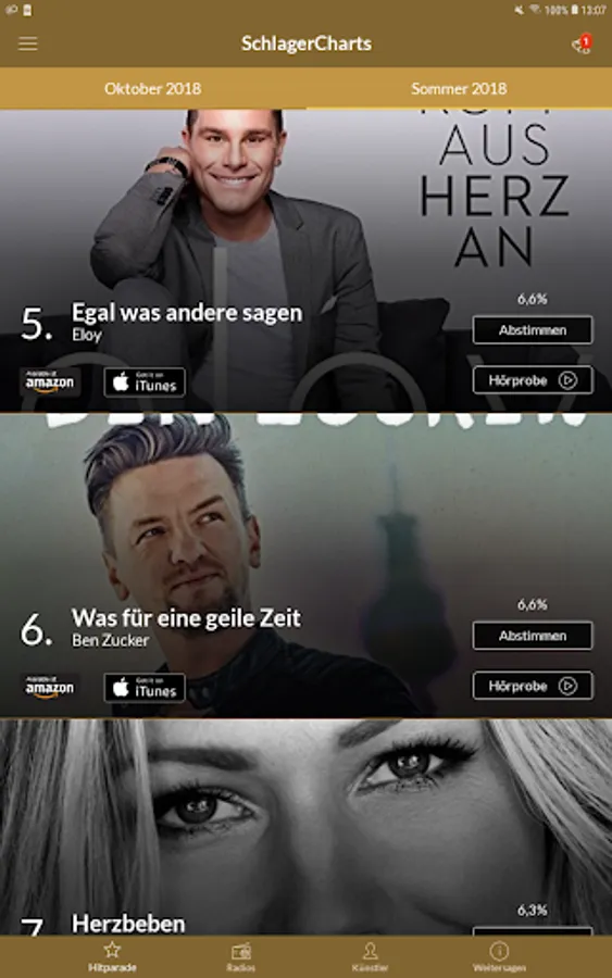 A hit parade of well-known, but also new hits you'll find in this app, which is of course completely free.