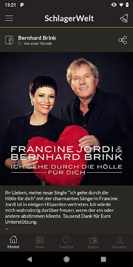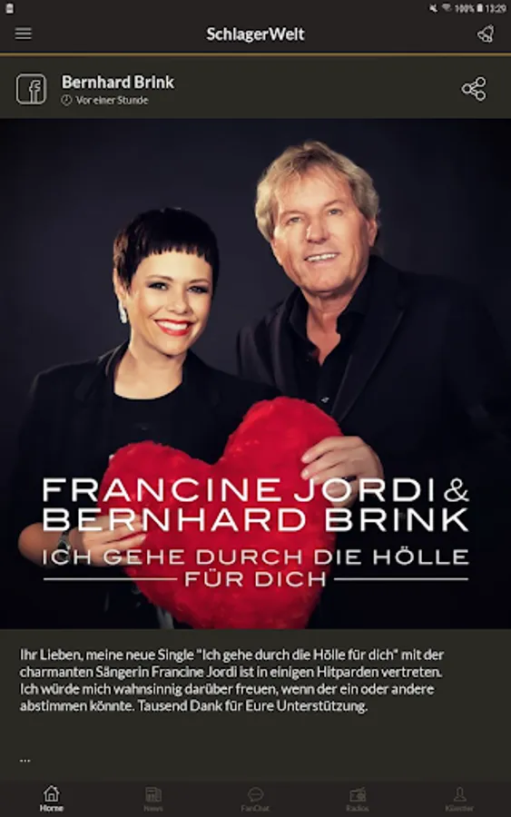 Install out the Schlagerwelt app now and never miss messages from your star or from the world of German pop!