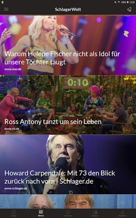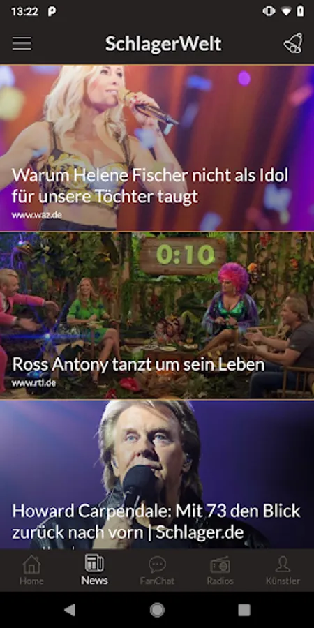 The official Schlagerwelt app brings the entire world of German pop straight to your smartphone. With Schlagerwelt You know at any time what is happening in the pop industry and are thus always well informed. Whether Helene Fischer, Vanessa May, Andreas Gabalier or your favorite artists - with our app can get you not only all the news, postings and appointments but also an exclusive insight into the life of your stars.